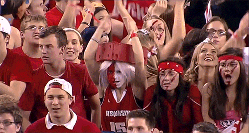 I don't remember why masks/costumes were banned at games at my high school, but in college people get really excited over football games. Full on face paint, costumes and too much glitter are among the many things you are likely to see at college football games.