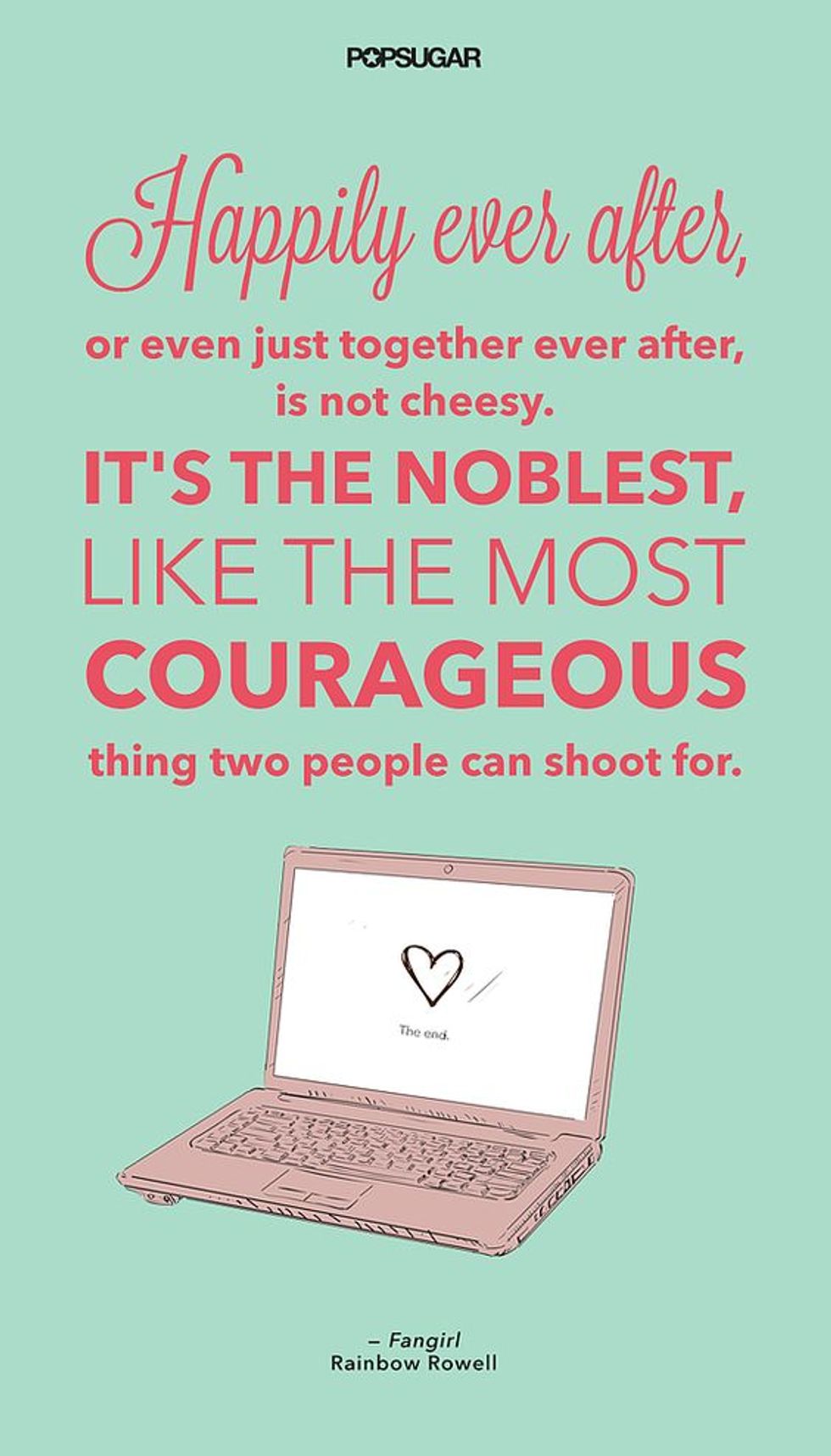 7. “Happily ever after, or even just together ever after, is not cheesy,” Wren said. “It’s the noblest, like, the most courageous thing two people can shoot for.” - Rainbow Rowell, "Fangirl"