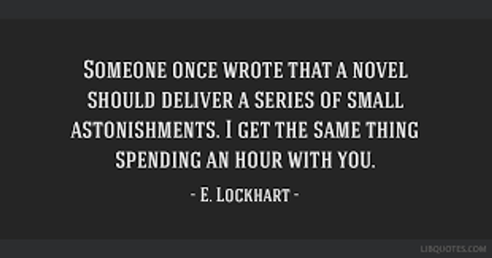 4. “Someone once wrote that a novel should deliver a series of small astonishments. I get the same thing spending an hour with you.” - E. Lockhart, "We Were Liars"