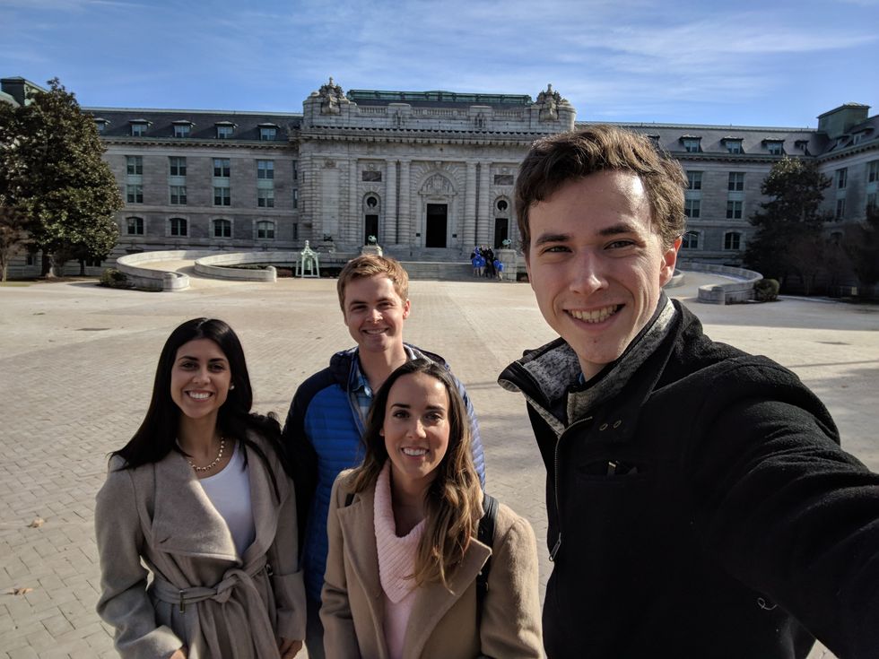 I'm originally from Illinois, so I first came out to intern in the Senate. Before that, I took a gap year between high school and college to work for a media company, thinking that was the direction I wanted to go. I realized that the work I was doing wasn't what I was passionate about, so going into college I transitioned to politics and government, which was a totally new world for me. That led me to work for an Illinois state representative, and my boss there suggested I intern in D.C., so I did.