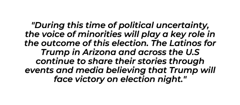 Arizona has become a purple swing state. They also boast a top-five rank of Hispanic and Latino population in the country, which is why the Latinos for Trump organization is so crucial.