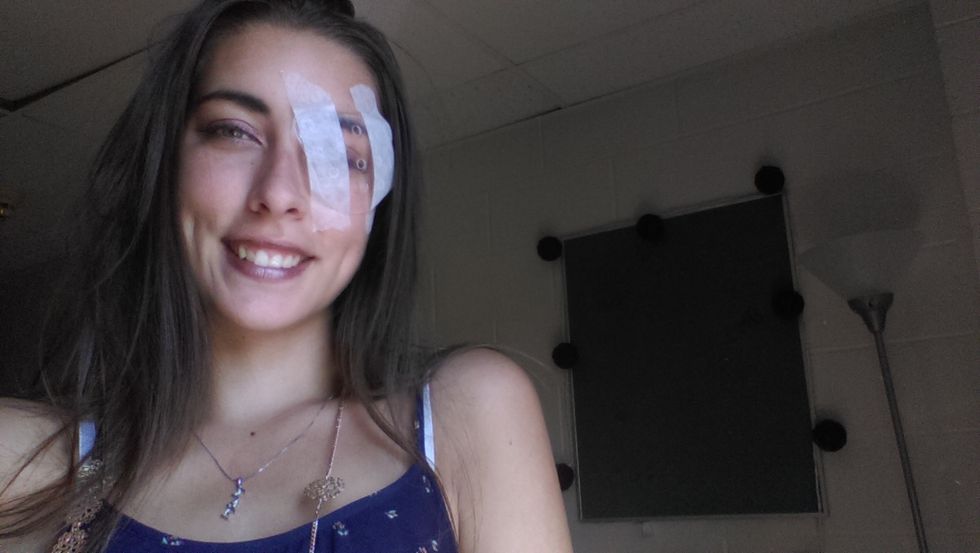 Some friends and I decided it would be fun to take a broomstick to hit cans off of a table outside. None of us thought it was a bad idea and we didn't think anyone would end up injured. When the next person in line went up to swing, I was standing too close to them. Next thing you know, I saw the broomstick coming right for my face, but I couldn't do anything because it was too late. The broomstick had bent in half when it hit me and the small sharp piece that was formed had cut my eyeball in half. At the time, I didn't realize what had happened. I was sitting on the steps of the porch with my hand covering my eye. People ask all the time if it hurt. Yes, but I felt more of a shock because of what happened. Everyone was freaking out, but I decided to remain calm. I went to the kitchen to clean my eye out when this girl looked at me and said I needed to get to the hospital right away, so my friends, boyfriend at the time, and I packed into the car and went to the hospital. After we got to Cabell Huntington Hospital, they told me they didn't have the equipment to work with my eye, so they transferred me to the University of Kentucky Hospital. My parents met us all there and later that morning of the 25th, I went in for my first surgery ever. Since then, I've had a total of three surgeries, cornea appointments every two weeks for the first three months after my accident, and retina appointments every month. I will never see out of my left eye again, but I've learned to accept that.
