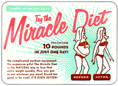 As I was driving home this weekend, a commercial came on the radio. Obviously, at this point, I would plug my phone into the aux cord to listen to my favorite Hoodie Allen playlist, but this commercial was intriguing to me. It claimed that the secret to losing weight was consuming fats and advertised for water infused with fats in order to aid weight loss. Although I agree that our population is probably not consuming enough healthy fats, I know that drinking fat infused water isn't going to help anyone lose weight. Advertisements for fad diets are everywhere. Walking downtown, scrolling through Pinterest, talking to friends, etc., it is nearly impossible to not be fascinated by the alluring promises of self-worth and confidence that losing weight will do. As Special K would ask, "What will you gain when you lose?" Fad diets are faulty promises to our population and are sickly promoting our weight loss obsessed society.