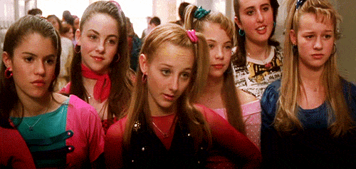 While fixing your hair you let slip that you think the guy with the blonde hair is super cute so one of his gal pals decides to give you life advice.