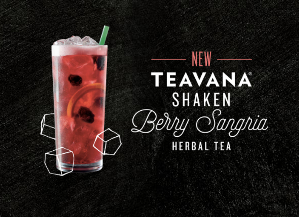 Did someone say sangria??? This new shaken iced tea has fresh brewed passion tango tea mixed with apple juice, hand shaken with juicy berry flavors and then topped with blackberries and orange slices. It's both sweet and tart and a refreshing twist on iced tea!