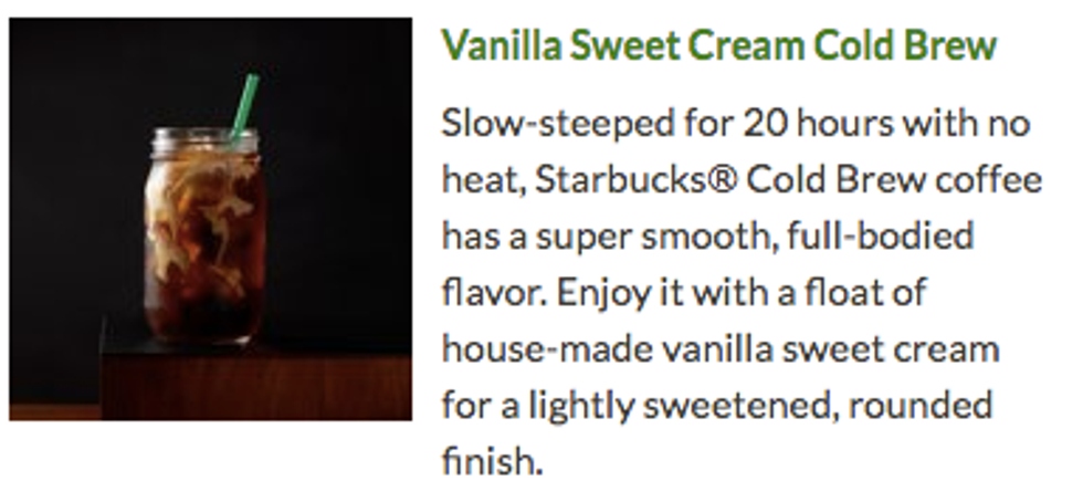 I've had this one so many times this summer I think it's in my blood stream now. But seriously, holy delicious! Cold Brew coffee has a distinct taste because it's brewed with cold water rather than hot water. This combination is both sweet and bitter and a must try.