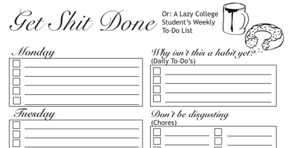 No, this doesn't mean placing Netflix over the rest of your responsibilities, as tempting as it may be. Rather, it means writing down a list of tasks that need to be completed and placing emphasis the most important ones. For example, you definitely need to do the assignment due tomorrow, but baking cookies can probably wait. Long lists are scary, but shorter lists of important tasks created from those long lists look less imposing and make you feel better about getting things done.