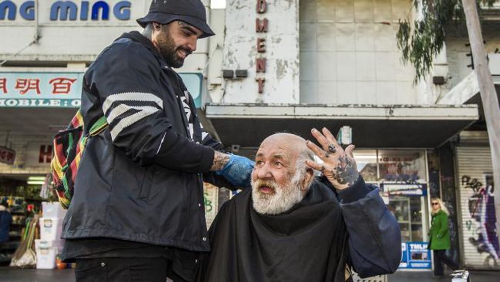 Nasir Sobhani, self-proclaimed "Street Barber," has certainly known his fair share of dark times marked by all those unfriendly and unanswered questions that sit unhappily in our hearts that we just previously spoke of. Nasir used to be a drug addict saying that he "didn't care about anybody else" during those dark years of his life. But these trying times served a purpose for Nasir. Nasir bravley faced rehab and was left feeling unsure about where to with his life after he got out. Nasir's parents suggest that he start cutting hair again, something he used to love to do for his friends when he was younger. Nasir now works 6 days a week as a barber and does something extremely extraordinary on his 1 day off; Nasir goes out into the streets and offers haircuts, conversation, and love to those in need. His claims that "serving others is the best high [he] has ever felt" and that "sharing the voice of the unheard is his new drug." Nasir offers each client a look in the mirror after their haircut, which some find hard to do. Sometimes its hard to face realitly, all of those unawnswered questions, and ourselves, Nasir claims that there was a time in his own life that he could not look in the mirror without crying. But no longer, through offering new perspective to others he has created a new perspective for himself as well. It seems that this call to serve others was not only an answer for Nasir, but perhaps also for those he serves. Sometimes an answer comes in the form of simply feeling clean again, of feeling loved, of feeling fed.