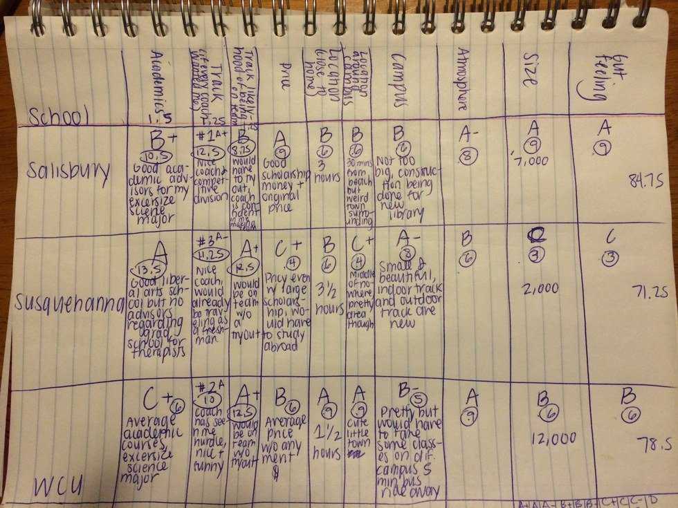By April, all of my best friends were wearing their new school colors with pride. While I was insanely happy for them, I longed for their excitement for the upcoming fall. Instead, I dreaded checking our high school's “College Acceptance Group” on Facebook and seeing my peers post their decisions. At this point I had narrowed it down to four schools: Westchester University of Pennsylvania, Salisbury University, the College of New Jersey, and Susquehanna University. With nowhere to turn, my family and I began picking names out of a hat (pathetic, right?). Next, I created a diagram analyzing everything each school had to offer for me, creating a points system with weighted categories. After realizing that with each pick I became more frustrated, and that my diagram was confusing, my mom suggested revisiting some of the campuses.