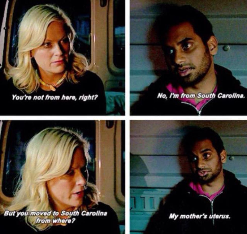 While it annoys me to no end that random strangers have decided that I'm automatically an International Student because of my "accent" (PSA: It's a speech impediment, not an accent. If you must point it out, please just call it a speech impediment.), it represents a bigger problem. America has a really hard time seeing Asians as "Americans," despite the fact that many people of Asian-American descent call this country their home. I could go into this further, but I think the following series of pictures from "Parks and Recreation" says it all: