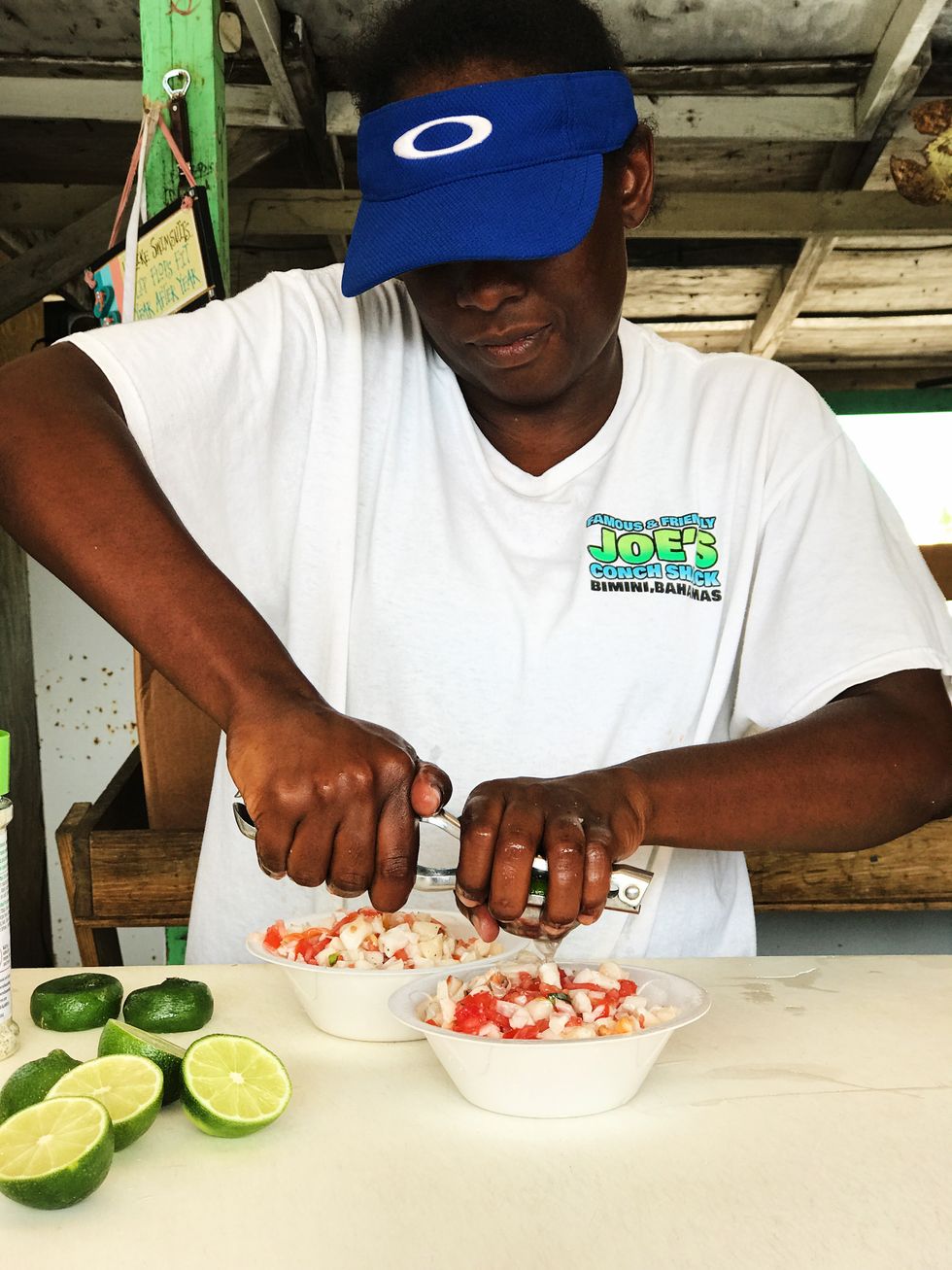 Three words: Joe's. Conch. Shack. This small shack is simply the best place to get fresh conch salad or delicious, greasy conch fritters. At Joe's you can spot someone in the back cutting up fresh conch as someone else in the front chops it up right away.