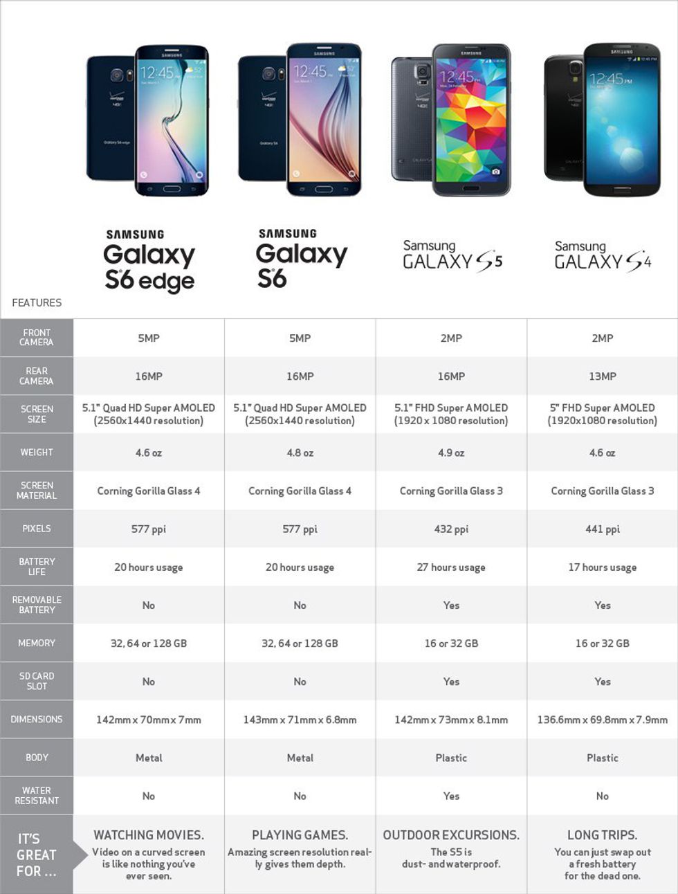 Take Samsung for example. Their Galaxy S4, S5, and S6 (and edge variants) have seen very small technological leaps forward. The S5 and S6 maintained the same 16-megapixel camera and the S4 supported a 13-megapixel camera. To most casual users, there is not a huge difference in functionality. Samsung’s last three market cycles have yielded more superficial changes than technological innovations and this trend seems to be carried through the market. Despite this, manufacturers continue to market their phones as cutting edge with little hardware improvement overall.