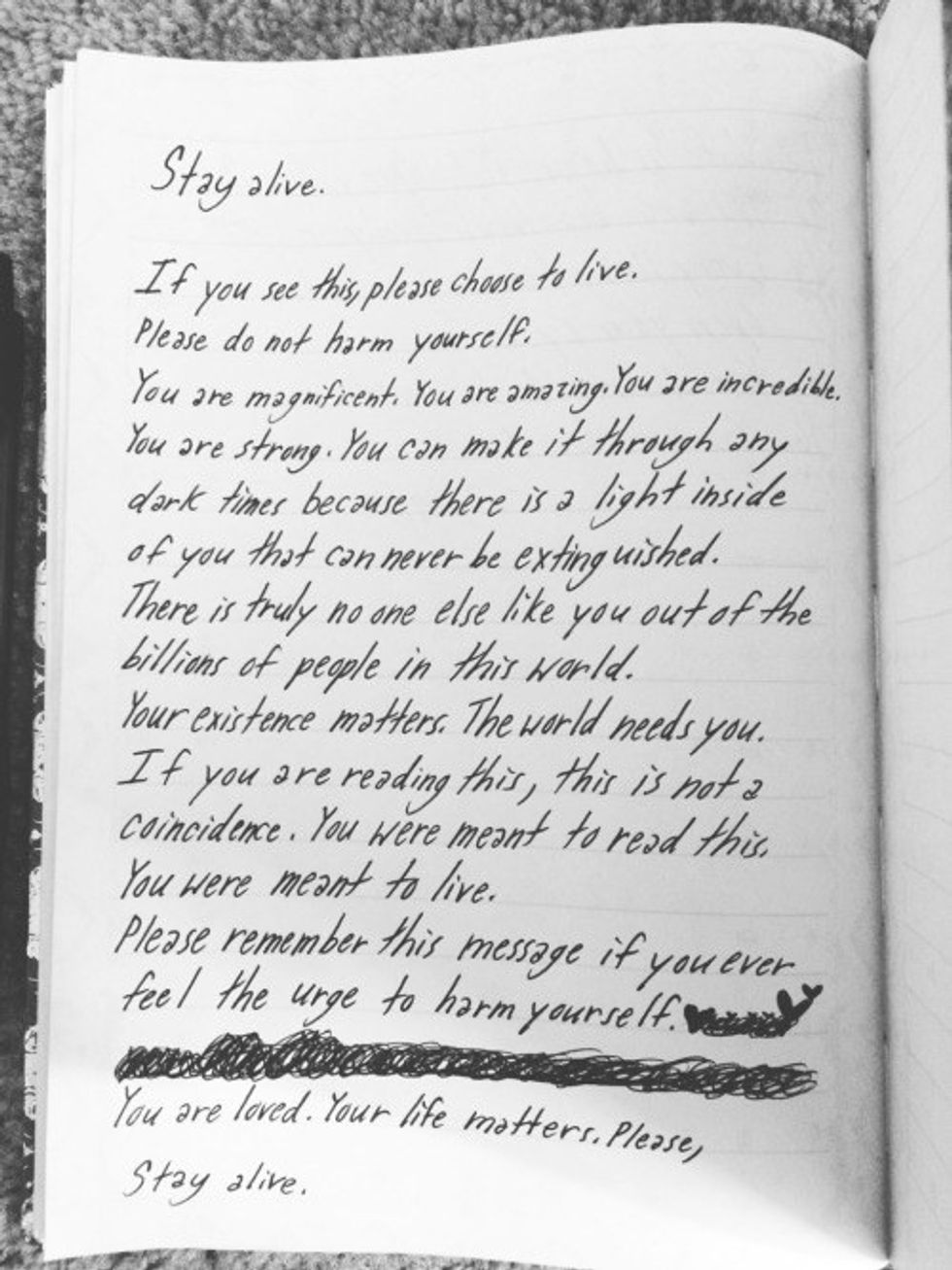 If you are reading this wondering how you can help someone considering suicide just be an ear for them, contact the close family of theirs if you are concerned for their safety, be a shoulder for someone to cry on, ask how someone is doing, but most of all be kind. You never know what struggles someone else may be going thru. If you ever feel like suicide is your only option, please seek help. Call anyone you can and tell them how you are feeling, go to your local hospital or call the National Suicide Prevention Lifeline, In the U.S., call 1-800-273-8255. If you don’t want to speak to someone on the phone, there is a lifeline you can text Start to 741741. On average, there are 117 suicides per day, don’t be another statistic. Please seek help any way possible, your life is far too precious to end it.