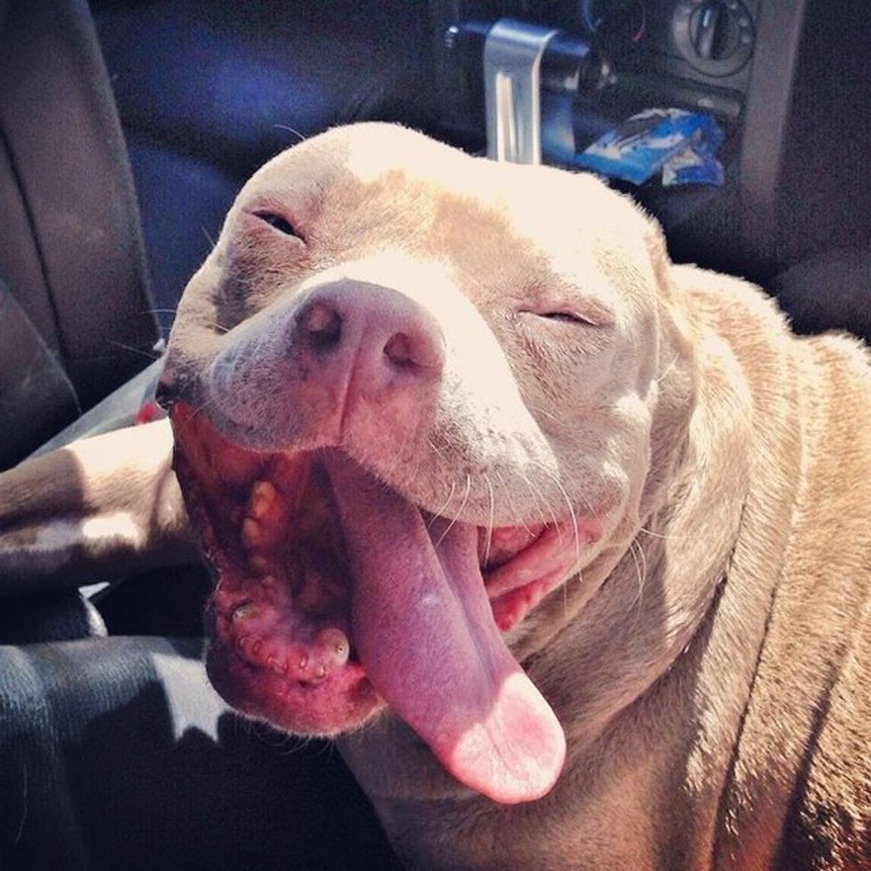 3. Two years ago, Stephanie Doris wasn't a pit bull person - she actually wasn't even a dog person. Then, she stumbled upon, Nana, a severely abused pit bull that was in desperate need of a home. Nana was guessed to have had nearly fifteen litters of puppies in her life, and was so violently abused that her previous owners had removed both of her ears. Though she is now deaf, she is a part of a happy family that treats her like a queen. Just look at that smile!