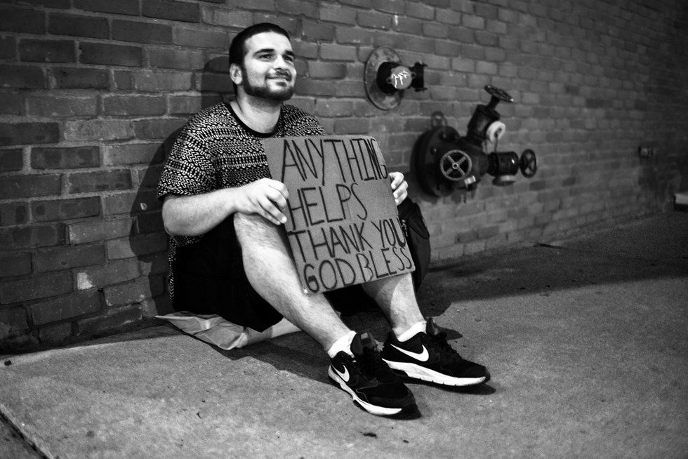 I caught up with my friends, who had walked a couple hundred yards in front of me. We had just been to a baseball game, and we were in a wealthier part of downtown Minneapolis. My--cynical--friend made a comment about how he witnessed the man's friend, also appearing homeless and young.