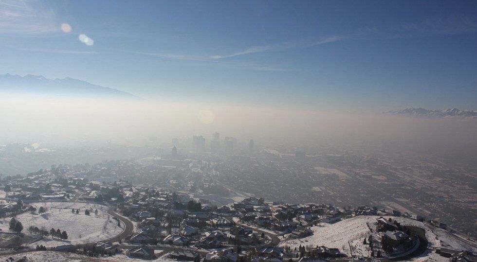 Figuratively, Satan. Literally, a combination of the water vapor from the lake effect of the Great Salt Lake and the smoke from factory smokestacks. Because Salt Lake City is in a valley, this diabolical cloud hovers above the city, constantly changing the air quality. But when the air is clear, the valley is quite a sight.