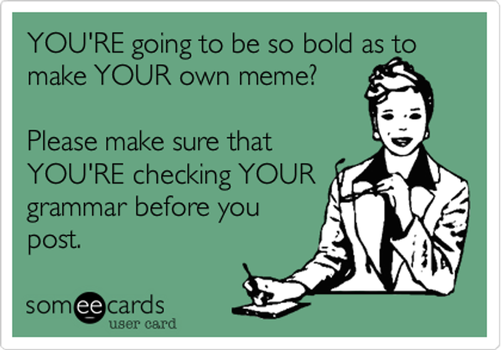In modern day society, it seems to me that people, specifically the younger crowd (teenagers and college students), do not know the difference between your and you're. As a result, I've decided to point out the difference, hoping that fewer people will make this common grammatical mistake. Sure, it may be daunting at first, but it's very simple.