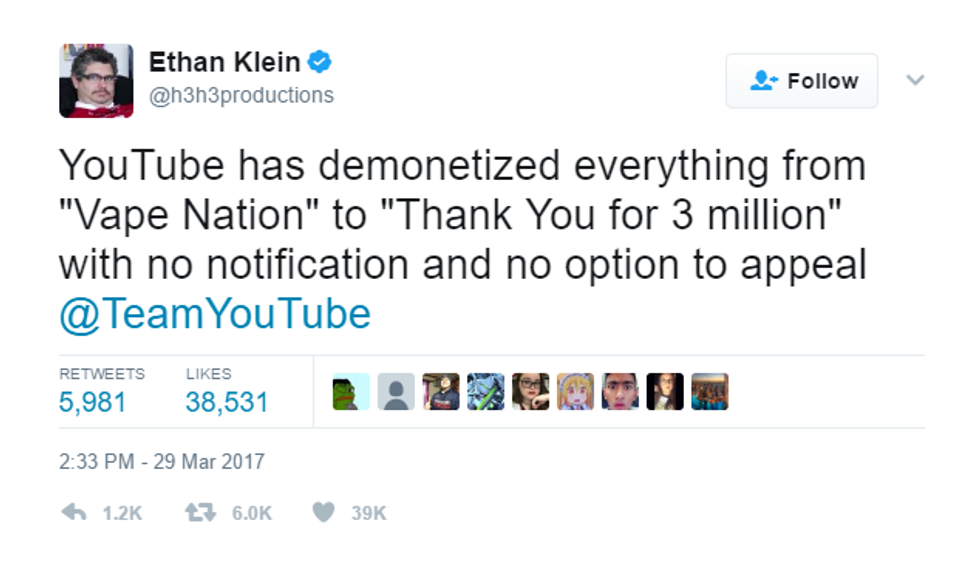 Big YouTubers, Jenna Marbles and Ethan Klein, expressed their concerns on Twitter. YouTube responded back to them saying that it was a bug in the system and as of right now the option to appeal has been fixed. However, there is still no email notification toward creators and the high amount of videos demonetized is still causing major concerns for content creators.