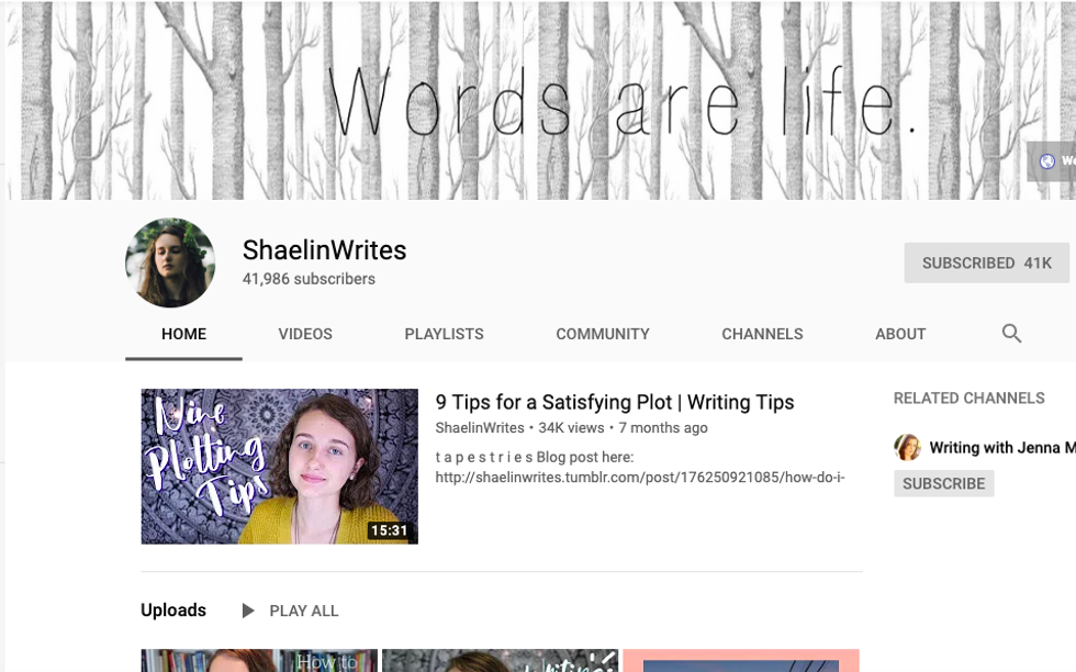 ShaelinWrites is a young writer finishing up her degree in Creative Writing. She makes very helpful writing videos that cover various parts of the writing process. I have found her to be very knowledgable in creative writing and her videos are well organized. She encourages me to continue fiction writing.