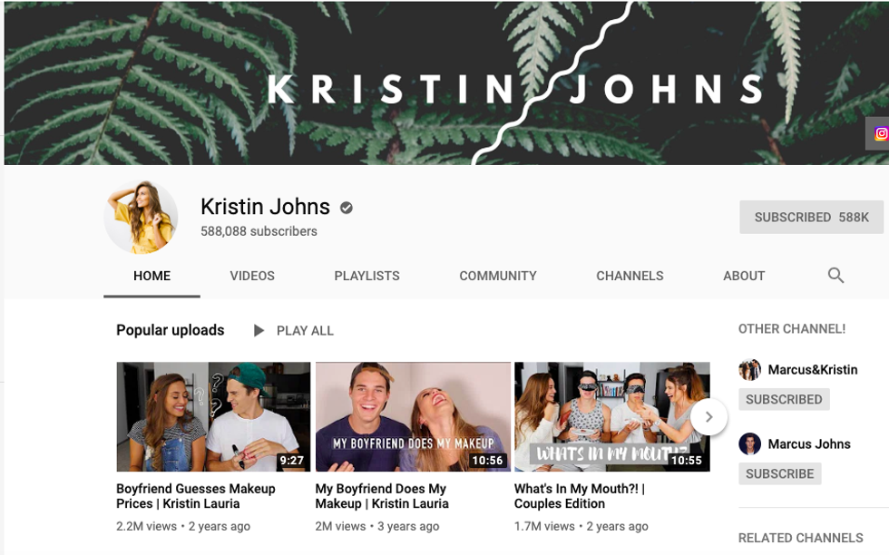 Kristin Johns is a very sweet youtuber who posts vlogs, hauls, beauty videos, challenges with her husband, and personal chit chats. She and her husband Marcus and so adorable and I look up to them so much. I love her unique style and personality.