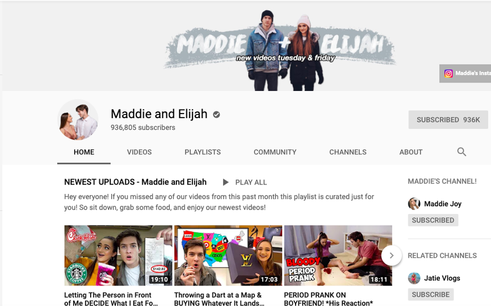Maddie and Elijah are a very cute couple who posts challenges, pranks, vlogs, and special moment videos. They are college-aged and are a fun couple to keep up with. They like to joke around with each other a lot and play pranks which are entertaining.
