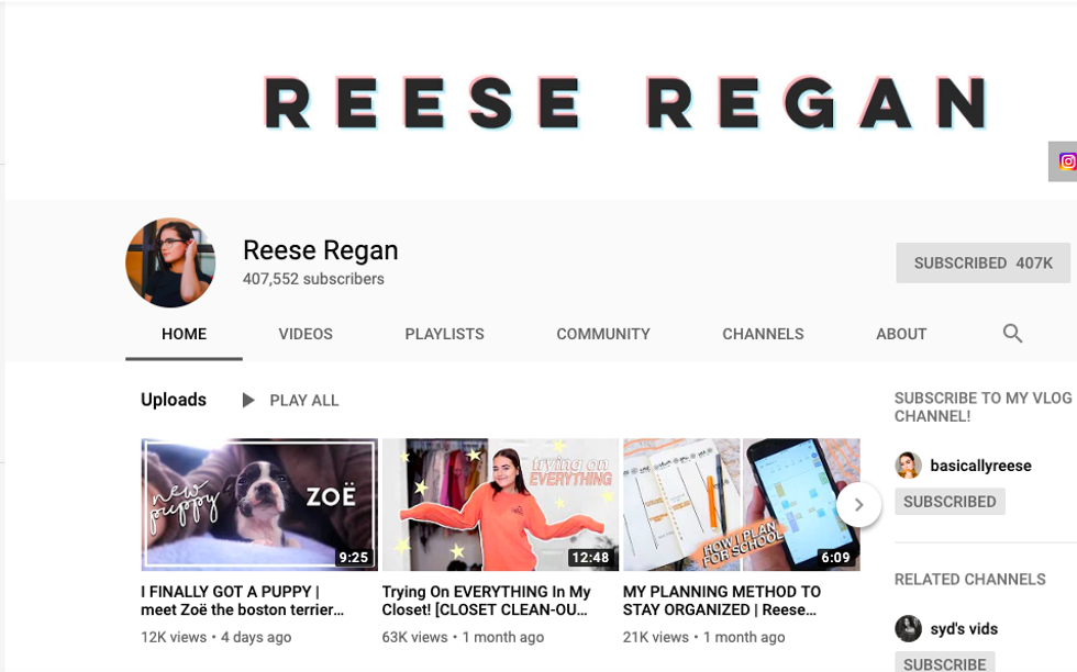 I have watched Reese Regan for a very long time now! She is a college student at Temple University who makes a lot of organizational and studying videos. She also has more fun videos too, such as makeup tutorials and health-related videos. Reese also just got her puppy, Zoë so I expect to be seeing a lot more videos with her in them.
