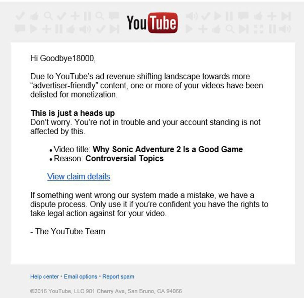 According to the Irish Examiner, a YouTube spokesman reported in a statement, "While our policy of demonetizing videos due to advertiser-friendly concerns hasn’t changed, we’ve recently improved the notification and appeal process to ensure better communication."