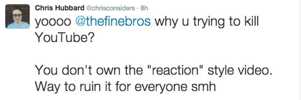 It’s not a stretch to see that the YouTube community — a place that since its creation has been about freedom and creativity, as well as yes, following popular trends — didn’t react so well to the news that they would soon have to stifle or relinquish control of their content. This places a limitation on YouTubers who are just creating content that their viewers request, especially because the Fine Bros plan on copyrighting all their video formats beyond just their react videos.