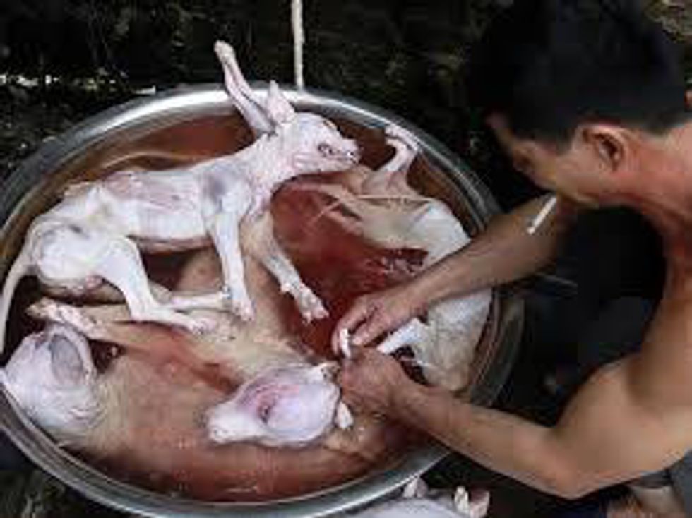 Chinese officials have released statements claiming anything from they don't think it's happening to they are trying to stop it and don't have control. To put all of that in perspective though, writer Dominick Mezzapesa put it perfectly when she said, "The communist country that seems to be able to dictate to it's 1.4 billion people how many children they may have, weaken religion by forcing Muslims to sell alcohol and cigarettes in their shops or they will be closed, demand that on the 3 major holidays that EVERY business close, a country that has the ability to spy on the US by hacking into the most sophisticated computer system on the planet"and they claim they can't stop this meat festival? They play like they are clueless to this cruelty. They are indifferent to this downright heinousness festival that happens every June. Absolutely disgusting.