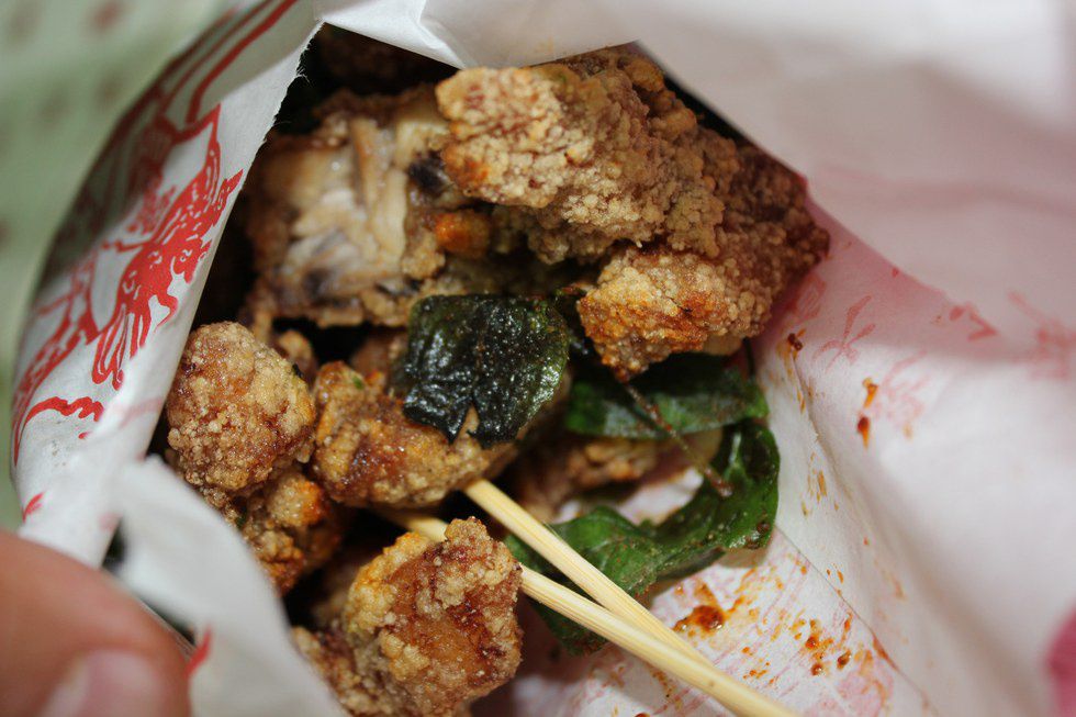 Just staring at this picture makes me want to run out to buy a bag. It's so fragrant that everyone standing within a ten foot radius knows you have it. Little morsels of chicken are deep fried then salted and spiced to perfection. It's worth the wait in night markets. This is, of course, a major guilty pleasure.