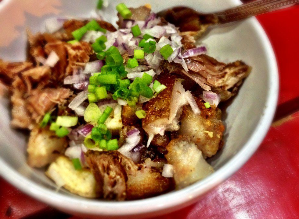 This one happens to be my brother's favorite dish. It's most distinctive feature? The savory peanut sauce. It's usually made with oxtail and pork hocks, as well as tripe and vegetables like long green beans and eggplant.