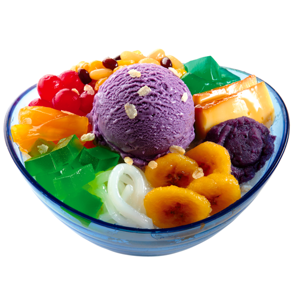 It's a major favorite among both children and adults alike. Made with several ingredients like sweet red beans, ube (purple yam) and mango ice cream, flan and many fruits, it's a treat that can easily bring out your inner child.