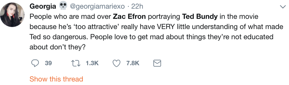 So when I heard that Zac Efron was playing Ted Bundy, I was initially excited because I love him as an actor. But, then I noticed that people were beginning to sexualize and romanticize Ted Bundy, because of the personal connection that people associate with Zac Efron. I know I have to see the movie before I make a defined opinion on the subject, but I already feel like casting Zac Efron was the wrong move for Joe Berlinger.