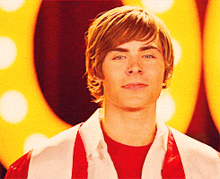 Summer vacation brings the group of high schoolers to work at a country club where Zac (Troy) is seen winking at his girlfriend Gabriella. Pretending that he's winking at me though.