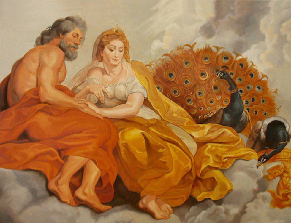 This, from my point of view, sounds like the most normal way of Zeus getting the girl. Well, maybe not. He was mortal during the affair, even though he is immortal. Hera tricked Semele into having Zeus do whatever she said by having him swear by the river Styx. Little did she know, that anyone who gazes upon Zeus in all his glory will burst into flames. Once Zeus appeared to her request, she was instantly consumed in the flames. Zeus then saved their son Dionysus by sewing him into his thigh when he was still a fetus.