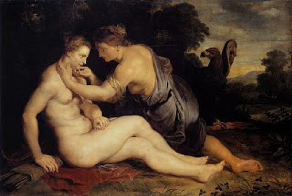 In this scene, Callisto is seduced by Zeus who took the form of Callisto's husband, Artemis. Honestly, what was wrong with Zeus' brain? However, this was really one of the few ways Zeus got the ladies, no matter how disturbing.