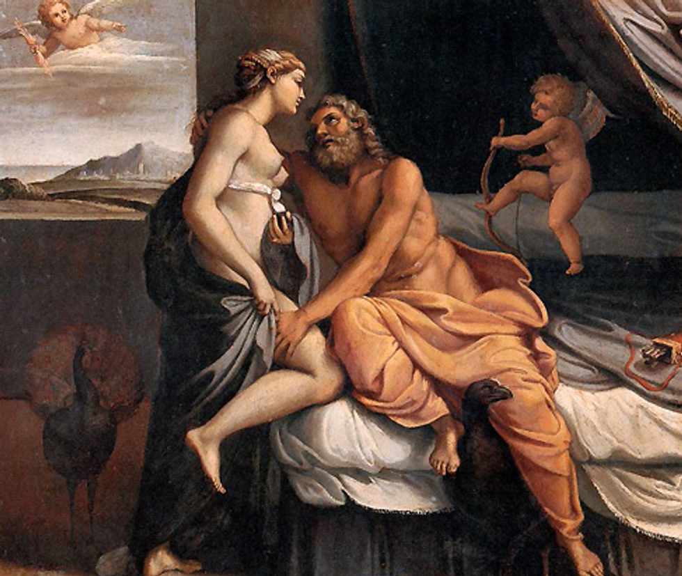 Cough *incest* cough cough. You got to admit that marrying siblings will lead to trouble. I guess Hera was jealous all the time so she wrecked havoc on all the women Zeus fell in love with. The whole Greek family of gods and goddesses basically married each other. Their parents, Cronus and Rhea were siblings, so that may be why Zeus doesn't know how to talk to the ladies.