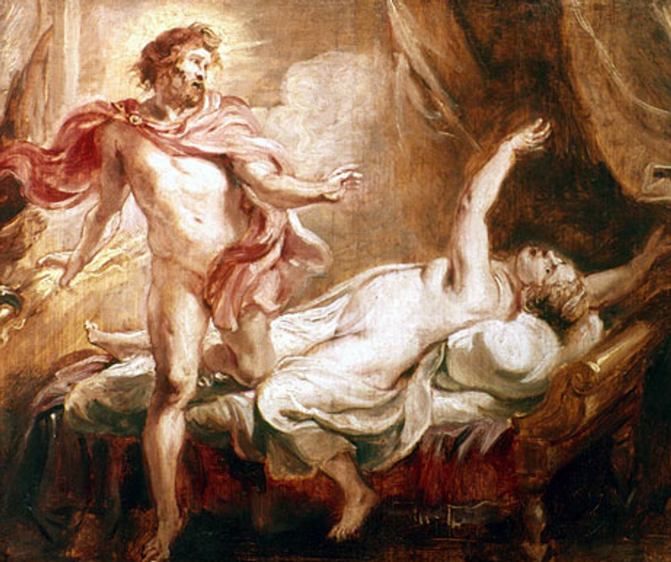 Of all the ways Zeus has gotten into someone's bed, this is probably the oddest one. There is a painting of this scene where Danaë is being showered with golden coins, which is similar to a golden shower. She then gave birth to a son, Perseus. Her husband, King Acrisius went mad after the birth and locked her in a tower when Danaë was pregnant. After the birth, Acrisius put Danaë and Perseus in a wooden casket and threw them in the water. The best film to see this story come to life is Clash of the Titans.