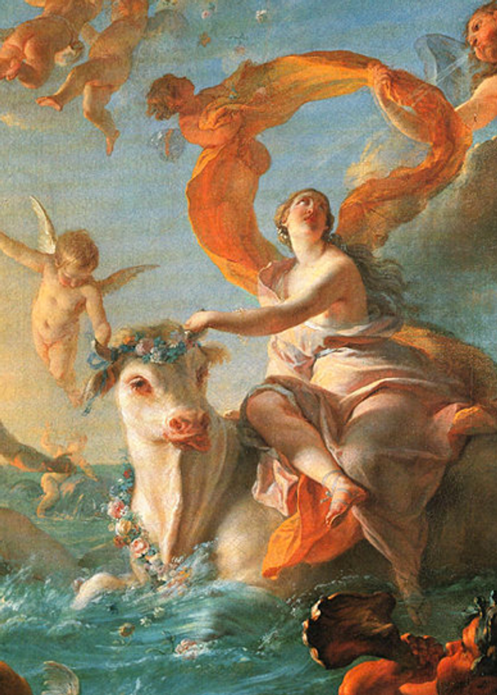 Again, this sounds like the seduction of Leda. But it's still weird that he did it in the form of a bull. Zeus went on to create a bull in the stars, which is now the Taurus constellation. Zeus transformed in a tame white bull in order to mix in with Europa's father's herd. Once Europa sat on the white bull (Zeus), he swam Europa to the island of Crete where she became queen. She then had six children with Zeus; Dodon, Minos, Carnus, Alagonia, Rhadamanthus, and Serapadon.