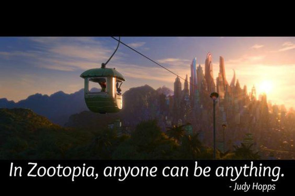 Let me first tell you what this movie is all about. Judy Hopps is a bunny that wants to help change her world. She becomes a cop. Everyone underestimates her. But she shows them that not everyone is as they seem. The good guys can turn out to be bad. And the bad guys could actually be the hero. Also anyone can be whatever they want to be, no matter who they are.