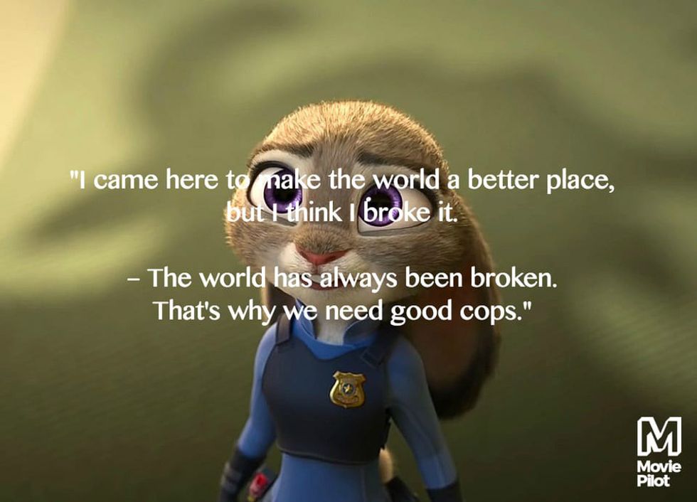The world isn't perfect. We think it is, because that is how we all have grown up to think that we have to be perfect. The truth is that nothing is perfect. Our faults make us who we are. We all have a job just like Judy did, to help our world any chance we get. We have police, firefighters, doctors, they change lives everyday. But we can too.